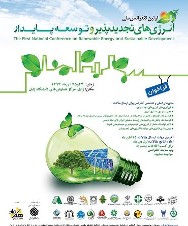 مجموعه مقالات اولین کنفرانس ملی انرژی های تجدید پذیر و توسعه پایدار در تاریخ ۲۴ دی ۱۳۹۳ تا ۲۵ دی ۱۳۹۳ توسط دانشگاه زابل و تحت حمایت سیویلیکا در شهر زابل برگزار گردید.