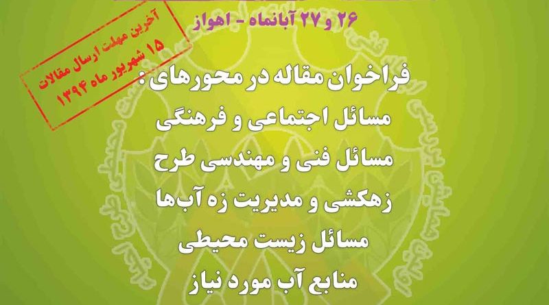 مجموعه مقالات اولین همایش ملی بررسی ابعاد اجرای طرح توسعه کشاورزی ۵۵۰ هزار هکتاری در تاریخ ۲۶ آبان ۱۳۹۴ تا ۲۷ آبان ۱۳۹۴ توسط استانداری استان خوزستان و تحت حمایت سیویلیکا در شهر اهواز – سالن اجتماعات استانداری خوزستان برگزار گردید.