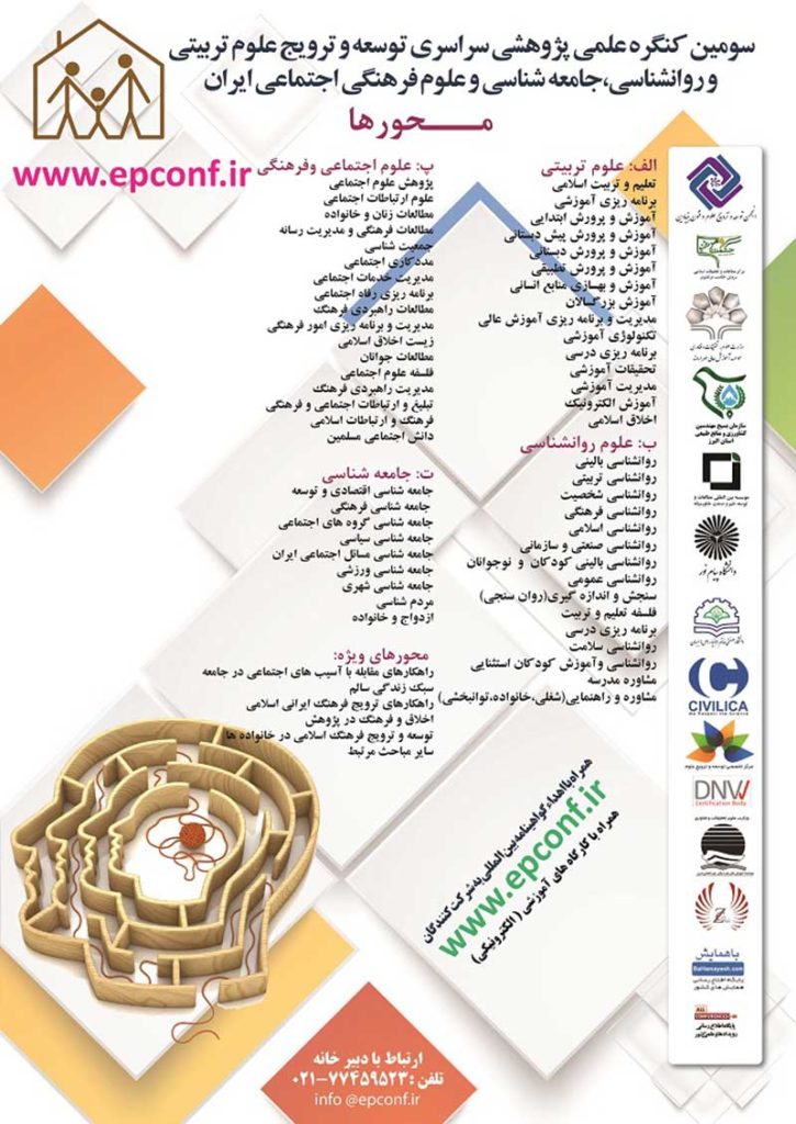 سومین کنگره علمی پژوهشی سراسری توسعه و ترویج علوم تربیتی و روانشناسی،جامعه شناسی و علوم فرهنگی اجتماعی ایران، ۶ شهریور ۱۳۹۵ توسط انجمن علمی توسعه و ترویج علوم و فنون بنیادین در شهر تهران برگزار می شود.