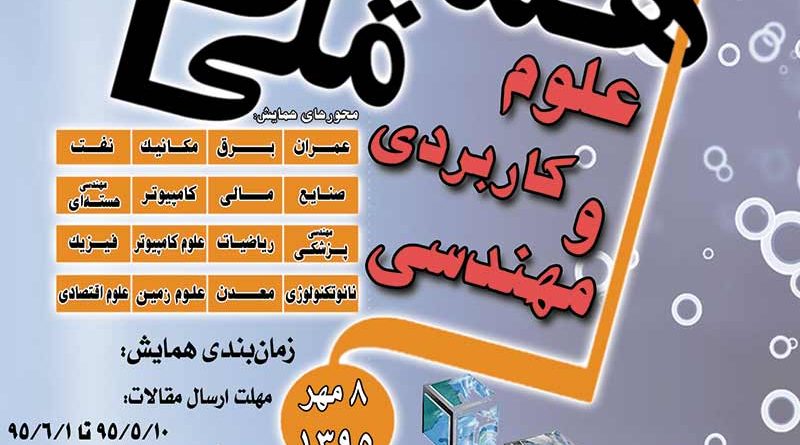 اولین همایش ملی علوم کاربردی و مهندسی، ۸ مهر ۱۳۹۵ توسط دانشگاه آزاد اسلامی واحد الیگودرز درمحل دانشگاه برگزار می شود.