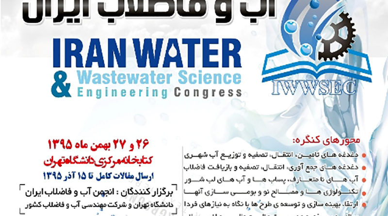 کنگره علوم و مهندسی آب و فاضلاب ایران، ۲۶ تا ۲۷ بهمن ۱۳۹۵ توسط انجمن آب و فاضلاب ایران ( وابسته به کمیسیون انجمن های علمی ایران) با همکاری دانشگاه تهران و شرکت مهندسی آب و فاضلاب کشور در شهر تهران برگزار می شود.