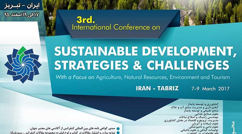 سومین کنفرانس بین المللی توسعه پایدار، راهکارها و چالش ها با محوریت کشاورزی ، منابع طبیعی ، محیط زیست و گردشگری،۱۷ تا ۱۹ اسفند ۱۳۹۵ در شهر تبریز برگزار می شود.
