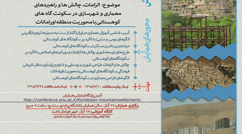 نخستین همایش معماری و شهرسازی با موضوع الزامات، چالشها و راهبردهای معماری و شهرسازی سکونت گاههای کوهستانی (با محوریت اورامانات)