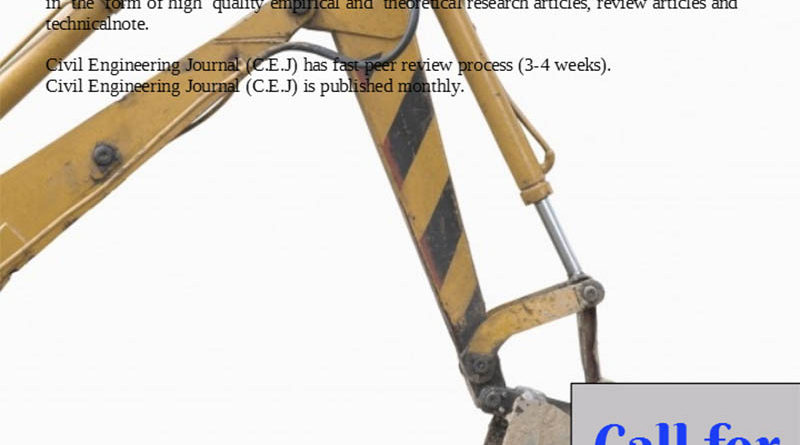 Civil Engineering Journal (C.E.J) is a multidisciplinary, an open-access, internationally double-blind peer-reviewed journal that is publishing 12 issues per volume (monthly). Civil Engineering Journal providing a platform for the researchers, academicians, professionals and students to impart and share knowledge in the form of high quality empirical and theoretical research articles, review articles and technical note.