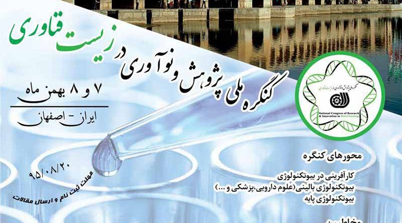 کنگره ملی پژوهش و نوآوری در زیست فناوری،۷ تا ۸ بهمن ۱۳۹۵ توسط اداره کل آموزش فنی و حرفه ای استان اصفهان با مشارکت دپارتمان زیست فناوری نوین در شهر اصفهان برگزار می شود.