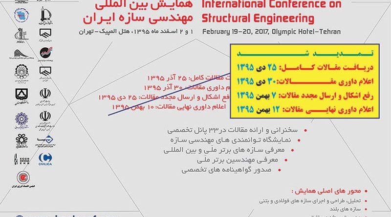 سومین همایش بین المللی مهندسی سازه، ۱ تا ۲ اسفند ۱۳۹۵ توسط انجمن مهندسی سازه ایران در شهر تهران برگزار می شود.