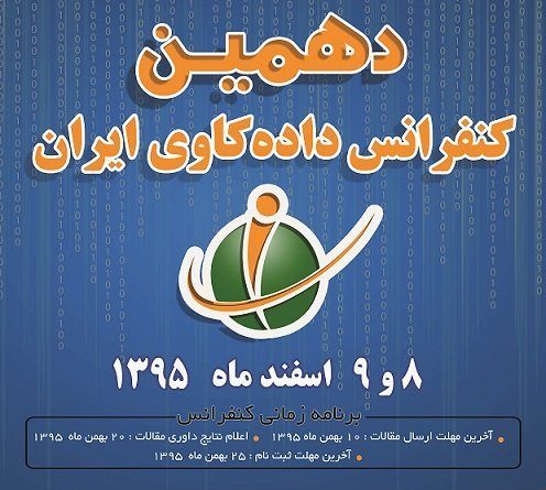 دهمین کنفرانس داده کاوی ایران،۸ تا ۹ اسفند ۱۳۹۵ توسط دبیرخانه دائمی کنفرانس داده کاوی در شهر تهران برگزار می شود.