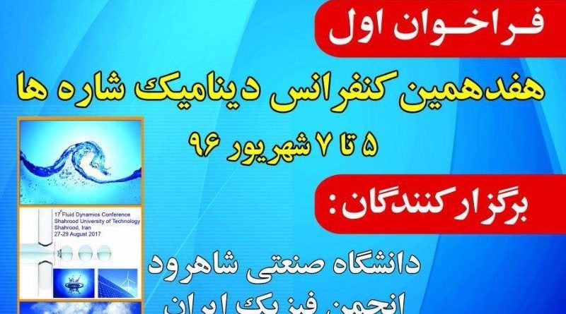 هفدهمین کنفرانس دینامیک شاره ها، ۵ تا ۷ شهریور ۱۳۹۶ توسط دانشگاه صنعتی شاهرود و انجمن فیزیک ایران در شهر شاهرود برگزار می شود.