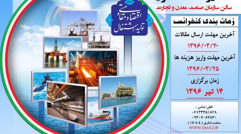 دومین کنفرانس سالانه اقتصاد،مدیریت و حسابداری، ۱۴ تیر ۱۳۹۶ توسط دانشگاه شهید چمران – سازمان صنعت،معدن و تجارت خوزستان در شهر اهواز برگزار می شود.
