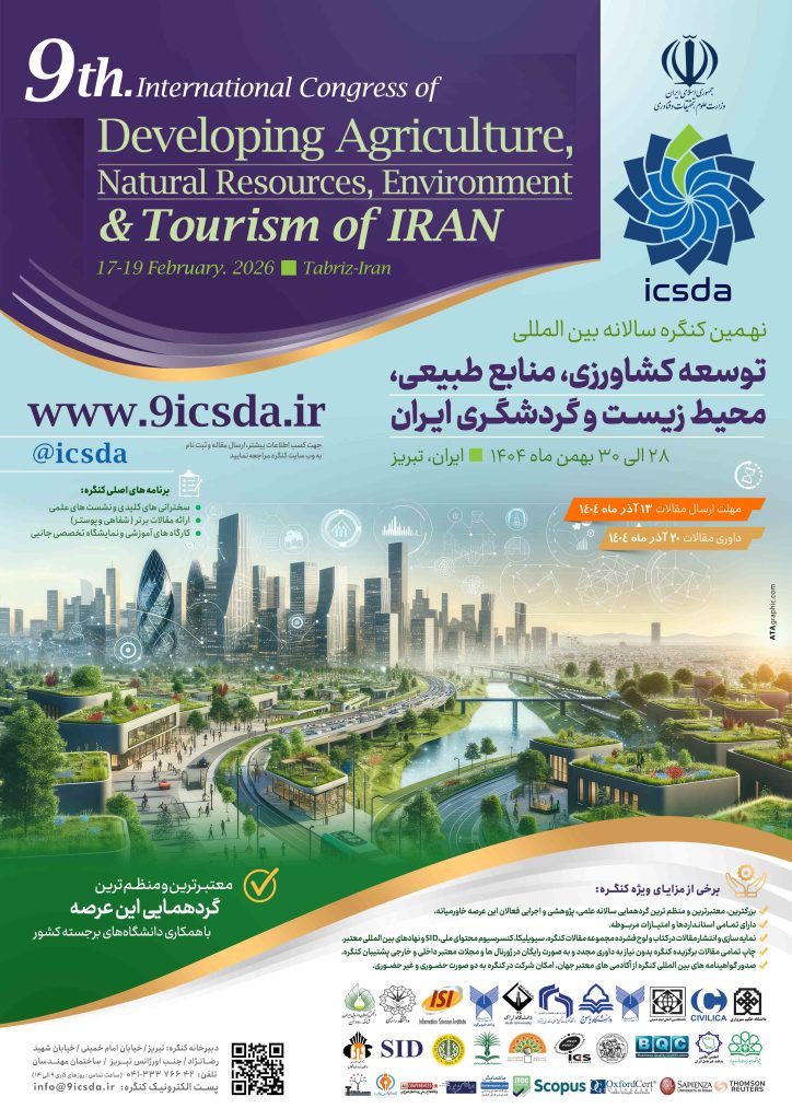 نهمین کنگره سالانه بین المللی توسعه کشاورزی، منابع طبیعی، محیط زیست و گردشگری ایران به عنوان بزرگترین، معتبرترین و منظم ترین گردهمایی سالانه علمی، پژوهشی و اجرایی حوزه کشاورزی، منابع طبیعی،صنایع غذایی، محیط زیست و گردشگری خاورمیانه در کشور ایران در تاریخ ۲۸ الی۳۰ بهمن ماه ۱۴۰۴ با مجوز رسمی وزارت علوم، تحقیقات و فناوری به شماره ۷۶۸۶۸۶۹ با شرکت بیش از ۳۵۰۰ نفراز فعالین این عرصه شامل دانشگاهیان، صاحب نظران، سیاستگزاران و مدیران، دانشجویان، سازمان های ذی ربط و علاقه مند، مهندسین و متخصصان از کشورهای مختلف جهان با همکاری دانشگاه شیراز، دانشگاه اراک، دانشگاه یاسوج و دانشگاه تحصیلات تکمیلی کرمان در پارک علم و فناوری آذربایجان شرقی برگزار میگردد. این کنگره در نظر دارد با معرفی توان علمی و کاربردی برای ارتقای سطح کیفی کشاورزی، منابع طبیعی، محیط زیست و گردشگری و همچنین بررسی نیازمندی و ضرورتهای آموزش موارد فوق گام برداشته و با شناسایی نگرشها، تجربیات نوین و تحلیل ابعاد نظری و کاربردی توسعه پایدار، به تحلیل ، آموزش و پژوهش آن بپردازد.