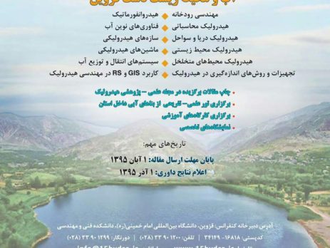پانزدهمین کنفرانس ملی هیدرولیک ایران در تاریخ ۲۴ آذر ۱۳۹۵ تا ۲۵ آذر ۱۳۹۵ توسط انجمن هیدرولیک ایران - دانشگاه بین المللی امام خمینی (ره) و تحت حمایت سیویلیکا در شهر قزوین برگزار می شود.