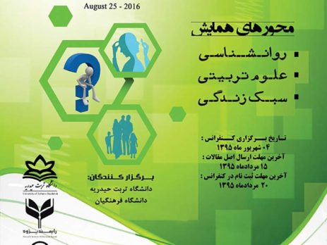 سومین کنفرانس بین المللی روانشناسی، علوم تربیتی و سبک زندگی در تاریخ۴ شهریور ۱۳۹۵ توسط دانشگاه تربیت حیدریه در شهر مشهد در محل دانشگاه تربت حیدریه برگزار می شود.