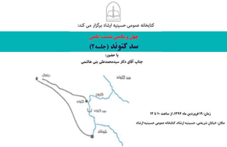 کتابخانه عمومی حسینیه ارشاد از سال ۱۳۹۲ چهل نشست علمی با موضوعات محیط زیستی و با هدف عمومی سازی علم در جامعه برگزار کرده است. به گزارش پایگاه فراخوانهای علمی پژوهشی کشور ؛ چهل و یکمین نشست علمی به موضوع سد گتوند «جلسه ۲» اختصاص دارد که روز پنجشنبه ۱۹ فروردین ۱۳۹۵ از ساعت ۱۰ تا ۱۲ برگزار می شود و "گزارشی از مطالعات علاج بخشی سد گتوند" توسط جناب آقای دکتر سیدمحمدعلی بنی هاشمی ارائه خواهد شد. شرکت در آن رایگان و برای علاقه مندان و اعضای کتابخانه آزاد است. اطلاعات مربوط به نشست های آتی متعاقباً اعلام خواهد شد. کتابخانه مشتاقانه آماده پاسخگویی به سؤالات علاقه مندان است و [...]