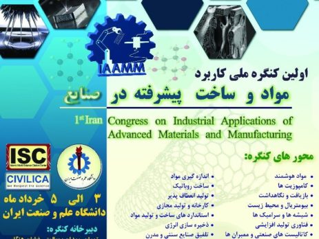 اولین کنگره ملی کاربرد مواد و ساخت پیشرفته در صنایع،۳ تا ۴ خرداد ۱۳۹۶ توسط دانشگاه علم و صنعت ایران در شهر تهران برگزار می شود.