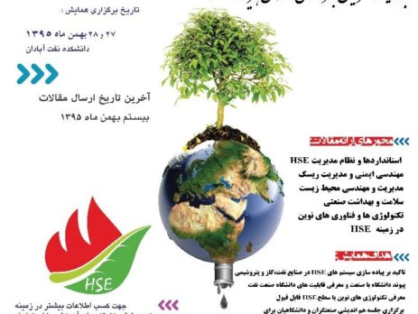 دومین همایش ملی HSE در صنایع نفت،گاز و پتروشیمی با رویکرد افزایش بهره وری و کاهش هزینه ها، ۲۷ تا ۲۸ بهمن ۱۳۹۵ توسط دانشگاه صنعت نفت در شهر آبادان برگزار می شود.