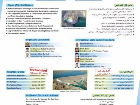 چهارمین کنفرانس بینالمللی رفتار بلندمدت و فنآوریهای نوسازی سازگار با محیط زیست سدها، ۲۵ تا ۲۷ مهر ۱۳۹۶ توسط کمیته ملی سدهای بزرگ ایران در شهر تهران برگزار می شود.