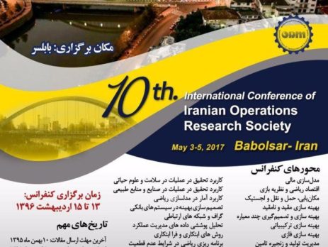 دهمین کنفرانس بین المللی انجمن تحقیق در عملیات ایران، ۱۳ تا ۱۵ اردیبهشت ۱۳۹۶ توسط انجمن ایرانی تحقیق در عملیات در شهر بابلسر برگزار می شود.