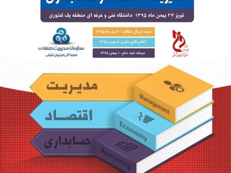 ششمین کنفرانس ملی مدیریت، اقتصاد و حسابداری در تاریخ ۲۷ بهمن ۱۳۹۵ توسط دانشگاه فنی و حرفه ای استان آذربایجان شرقی با همکاری سازمان مدیریت صنعتی تبریز در شهر تبریز برگزار می شود.