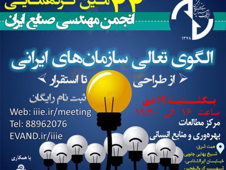 چهل و چهارمین گردهمایی انجمن مهندسی صنایع ایران، با همکاری سازمان مدیریت صنعتی (مرکز تعالی سازمانی) برگزار می شود.