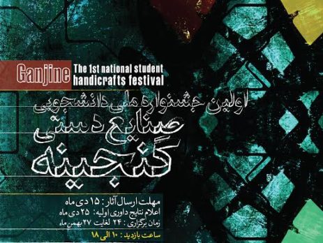 اولین جشنواره ملی دانشجویی صنایع دستی گنجینه به همت دانشجویان و هنرمندان دانشگاه هنر برای نخستین بار در ایران برگزار خواهد شد. این جشنواره که در شش گرایش چوب، شیشه، فلز،سفال ، بافت و نگارگری برگزار میشود،در نظر دارد با ایجاد فضای رقابتی و علاقه مند کردن دانشجویان به خلق آثار هنری ، ارتقا سطح کیفی محصولات و ارتقا سطح علمی دانشجویان صنایع دستی و همچنین ایجاد فضای پژوهشی موجب شکست رکود و سکون فضای آکادمیک و مسبب پویایی دانشجویان و هنرجویان صنایع دستی شود.