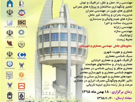 سومین همایش بین المللی معماری عمران وشهرسازی در آغاز هزاره سوم، ۱ تیر ۱۳۹۶ توسط شرکت نقش و طرح آنا بافت شهر در شهر تهران برگزار می شود