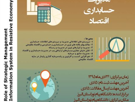 همایش ملی نقش مدیریت استراتژیک و سیستمهای اطلاعاتی حسابداری در اقتصاد مقاومتی، ۲۴ دی ۱۳۹۵ توسط دانشگاه پیام نور استان البرز در شهر کرج برگزار می شود.