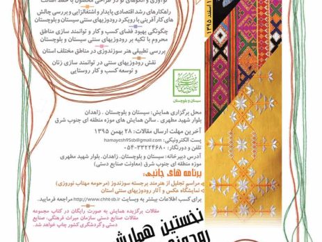 نخستین همایش رودوزی های سنتی سیستان و بلوچستان، ۱۰ اسفند ۱۳۹۵ توسط اداره کل میراث فرهنگی، صنایع دستی و گردشگری سیستان و بلوچستان در شهر زاهدان برگزار می شود.