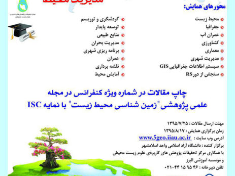 پنجمین همایش ملی فضای جغرافیایی،رویکرد آزمایشی،مدیریت محیط ، ۱۷ آبان ۱۳۹۵ توسط دانشگاه آزاد اسلامی واحد اسلامشهر - مرکز تحقیقات پژوهش های کاربردی علوم زیست محیطی - موسسه آموزشی البرز در شهر اسلامشهر برگزار می شود.