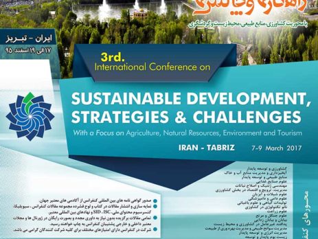 سومین کنفرانس بین المللی توسعه پایدار، راهکارها و چالش ها با محوریت کشاورزی ، منابع طبیعی ، محیط زیست و گردشگری،۱۷ تا ۱۹ اسفند ۱۳۹۵ در شهر تبریز برگزار می شود.