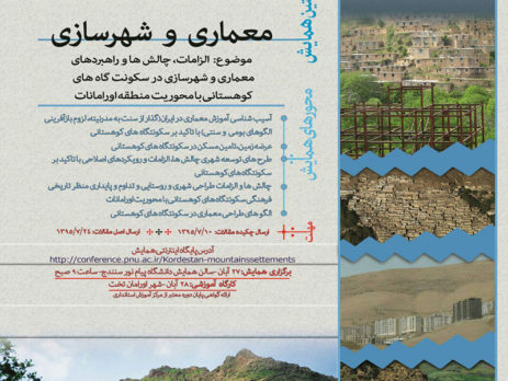 نخستین همایش معماری و شهرسازی با موضوع الزامات، چالشها و راهبردهای معماری و شهرسازی سکونت گاههای کوهستانی (با محوریت اورامانات)، ۲۷ آبان ۱۳۹۵ توسط دانشگاه پیام نور مرکز سنندج در سالن همایش دانشگاه پیام نور مرکز سنندج برگزار می شود.
