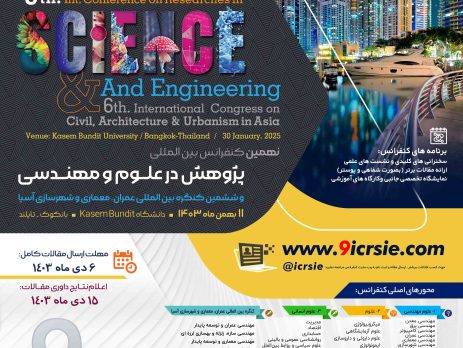 تمدید مهلت ارسال مقالات نهمین کنفرانس بین المللی پژوهش در علوم و مهندسی و ششمین کنگره بین المللی عمران، معماری و شهرسازی آسیا تا ۶ دی
