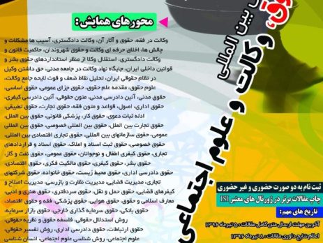 اولین همایش بین المللی فقه و حقوق،وکالت و علوم اجتماعی، ۲۲ تیر ۱۳۹۶ توسط دبیرخانه دائمی کنفرانس در شهر همدان برگزار می شود.
